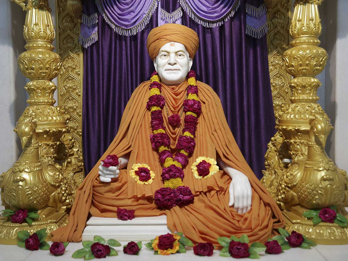 Swamishri engrossed in darshan of Brahmaswarup Shastriji Maharaj at Shri Yagnapurush Smruti Mandir