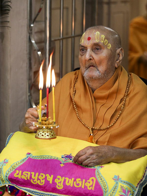 Swamishri observes 'Akhand Bhakti Yagna' being conducted as part of the Sarangpur Mandir Shatabdi Mahotsav celebrations