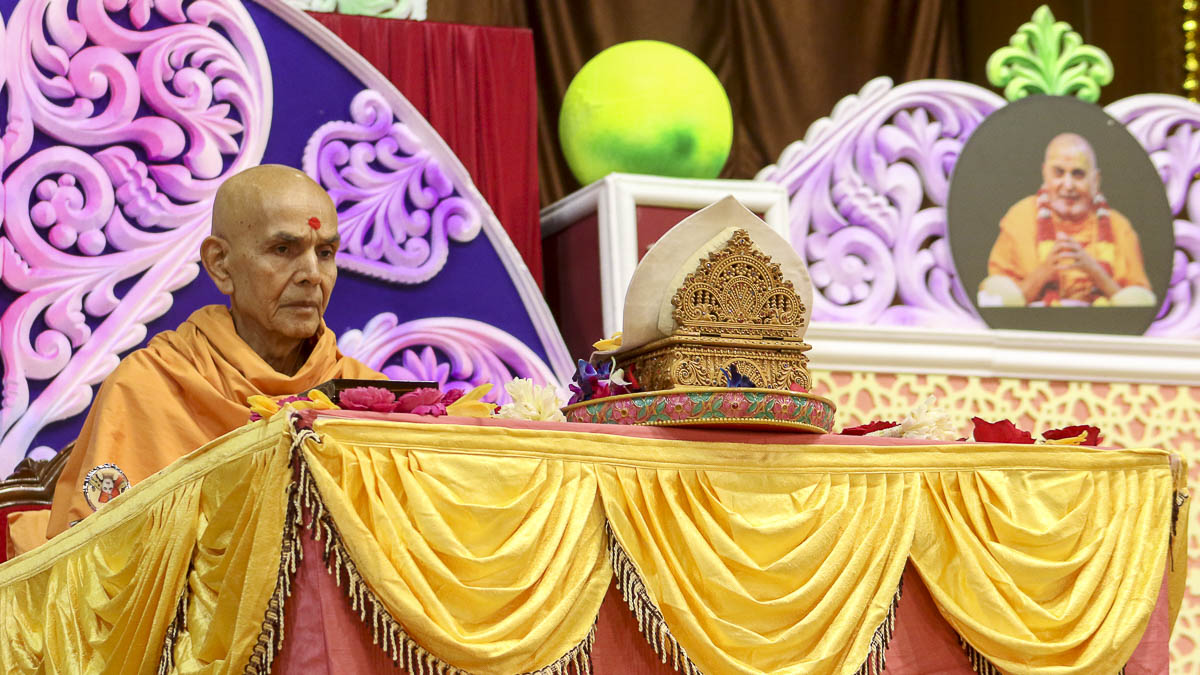 Param Pujya Mahant Swami sanctifies shawls and garlands, 18 Sep 2016