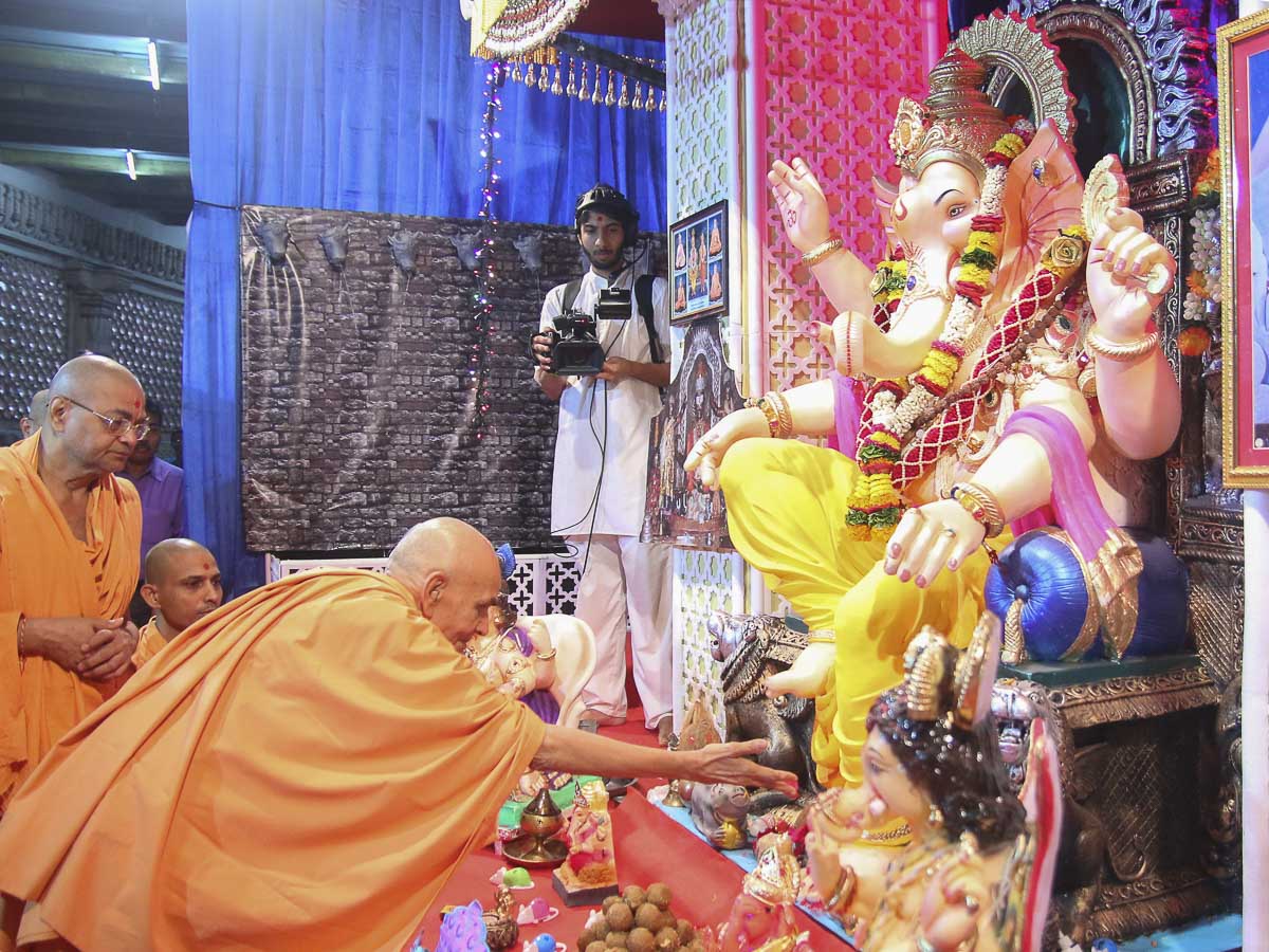Param Pujya Mahant Swami performs pujan of Shri Ganeshji, 17 Sep 2016