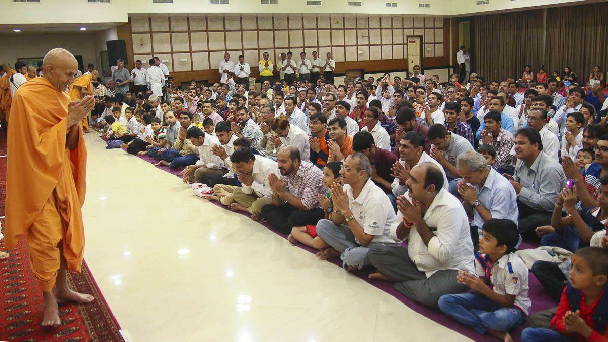 Param Pujya Mahant Swami greets devotees with 'Jai Swaminarayan', 16 Sep 2016