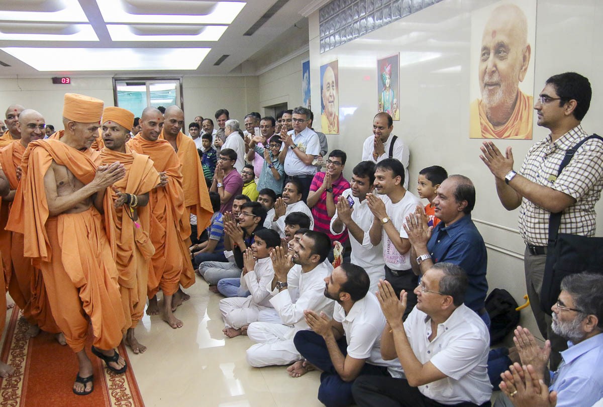 Devotees doing darshan of Param Pujya Mahant Swami, 18 Sep 2016