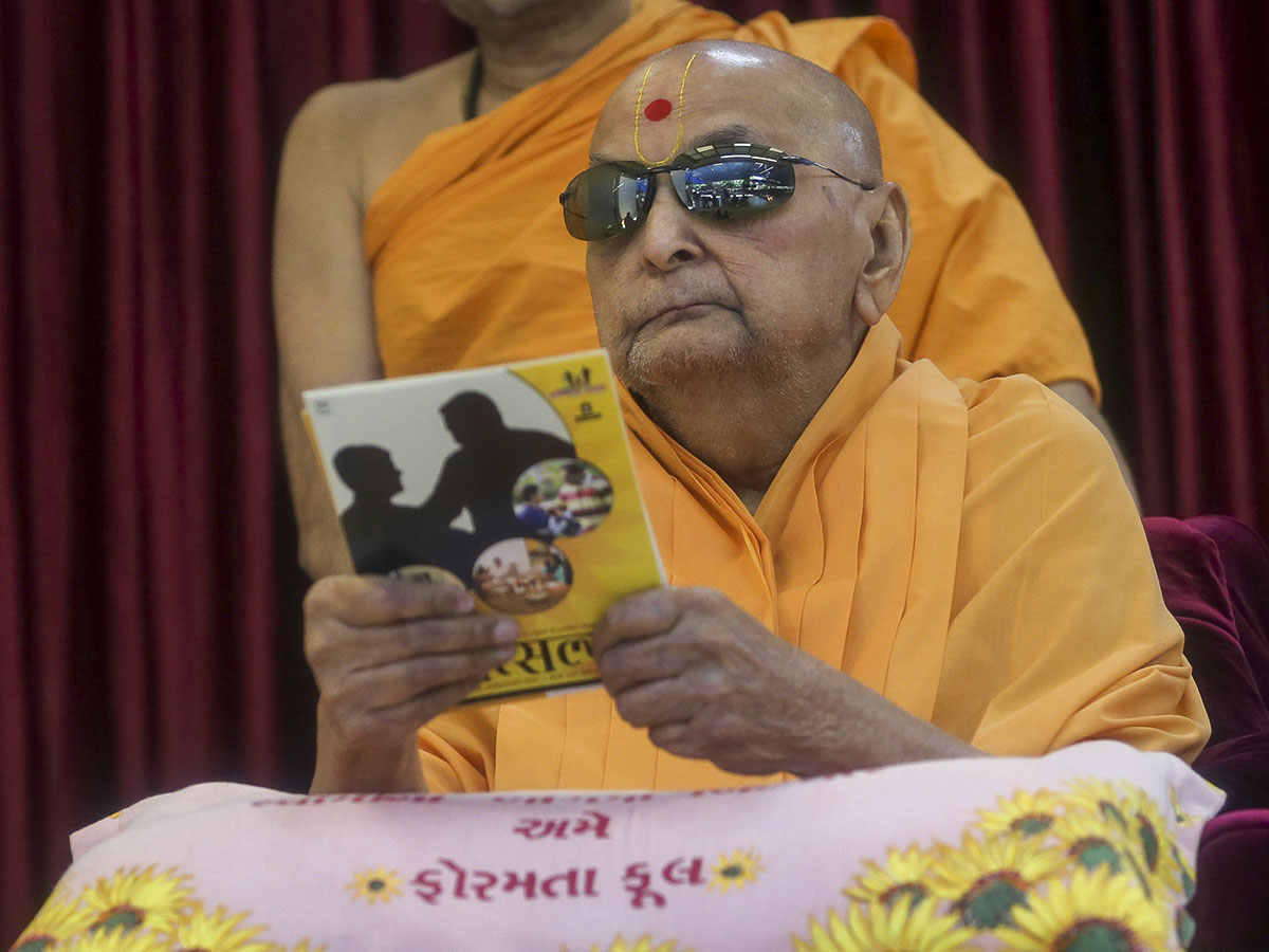 Swamishri inaugurates a Video publication, 'Paratpar'- Pramukh Swami Maharaj Janmajayanti Mahotsav