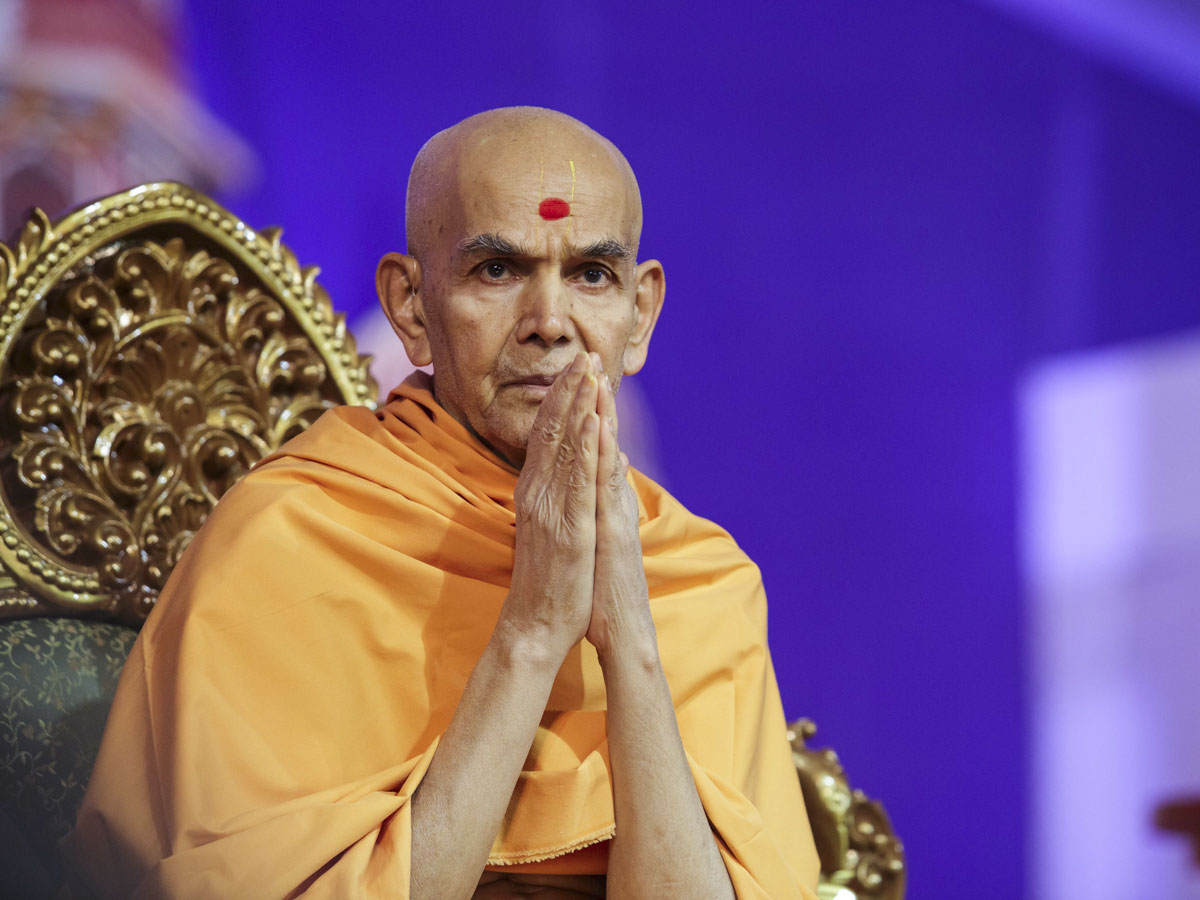 Param Pujya Mahant Swami Maharaj performs morning arti