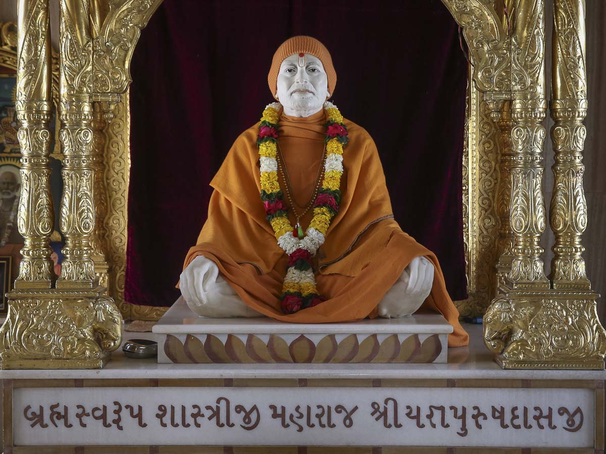 Param Pujya Mahant Swami Maharaj doing darshan of Brahmaswarup Shastriji Maharaj in the Rangmandap, 9 Feb 2017