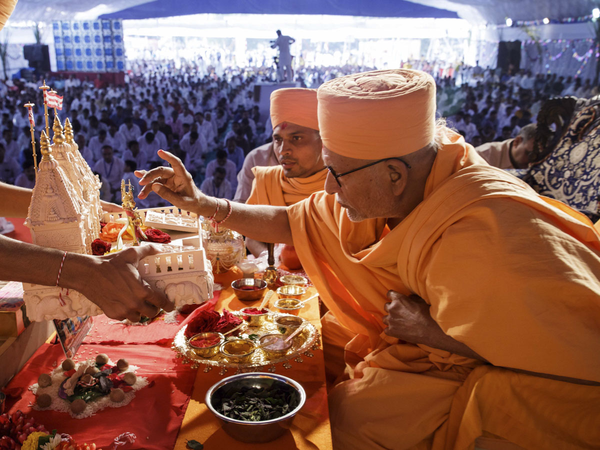 Pujya Bhaktipriya Swami (Kothari Swami) performs shilanyas mahapuja rituals