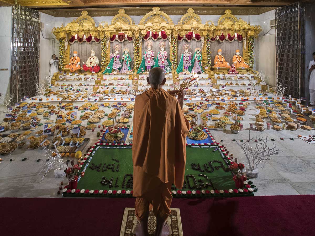 Swamishri performs arti of Thakorji, 14 Apr 2017