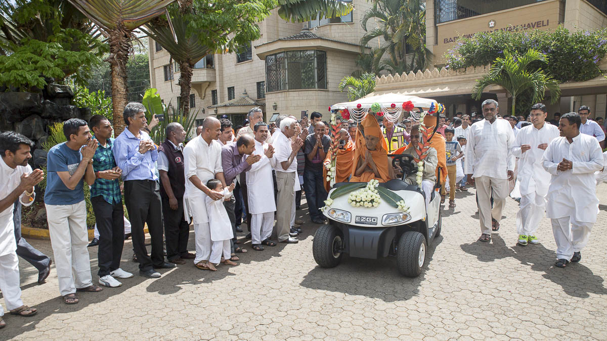 Swamishri arrives for Thakorji's darshan, 14 Apr 2017