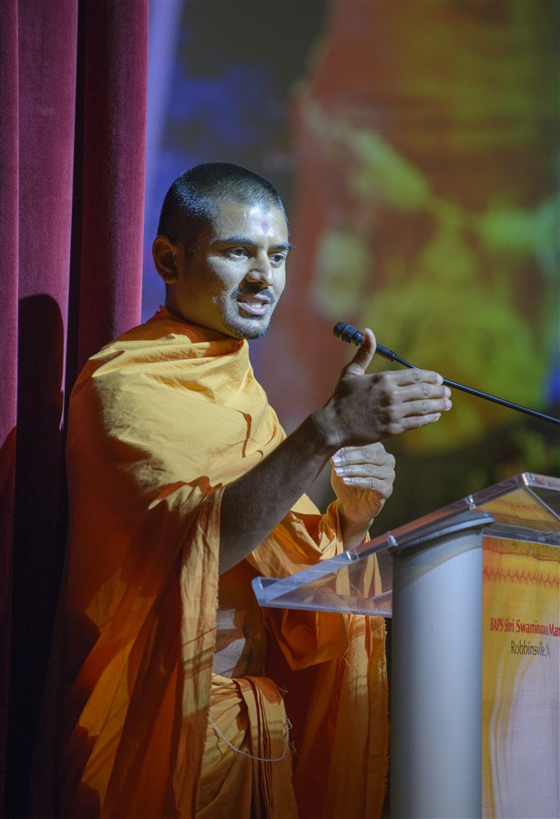 Pujya Ishwarcharandas Swami reads a 'Pratigna' (oath) for devotees to Swamishri