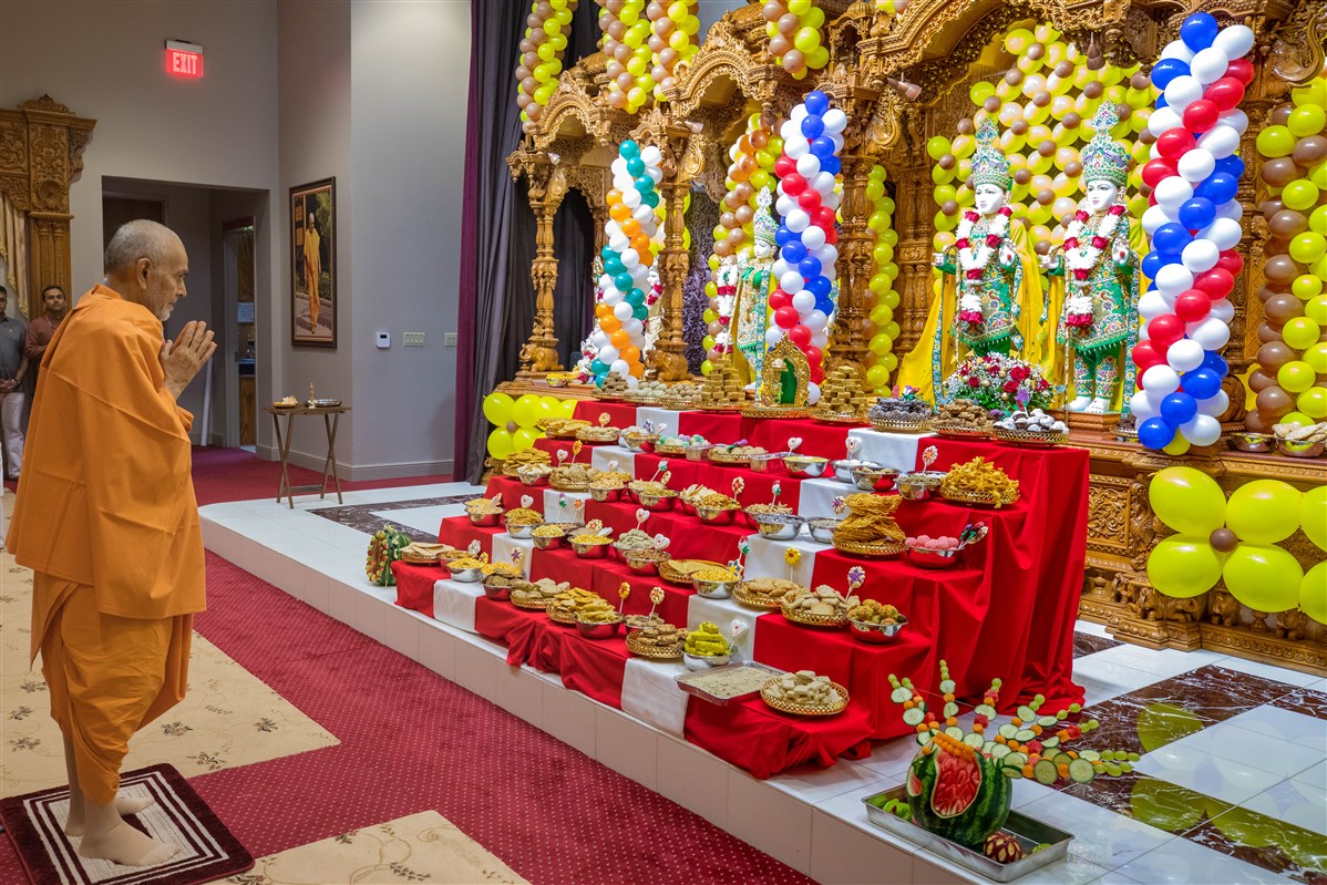 Param Pujya Mahant Swami Maharaj engrossed in darshan of Thakorji