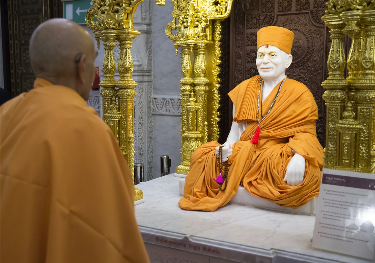 Swamishri engrossed in the darshan of Yogiji Maharaj