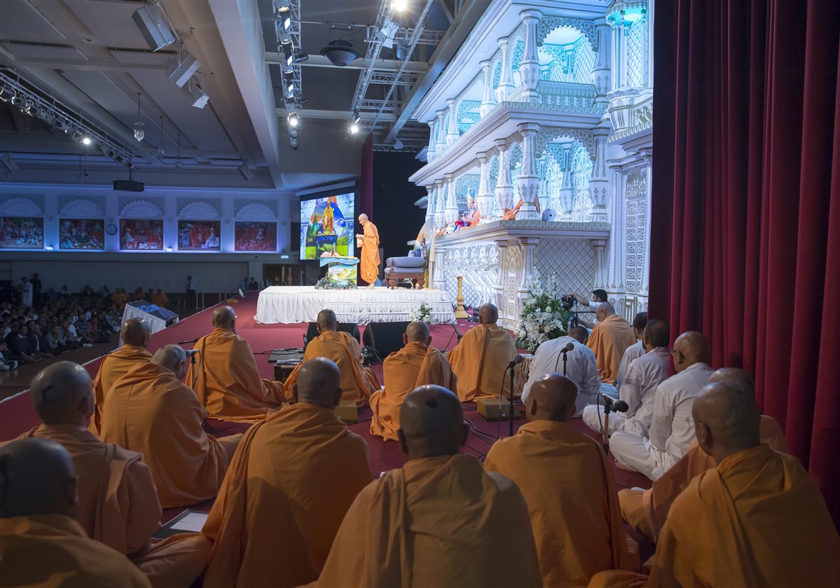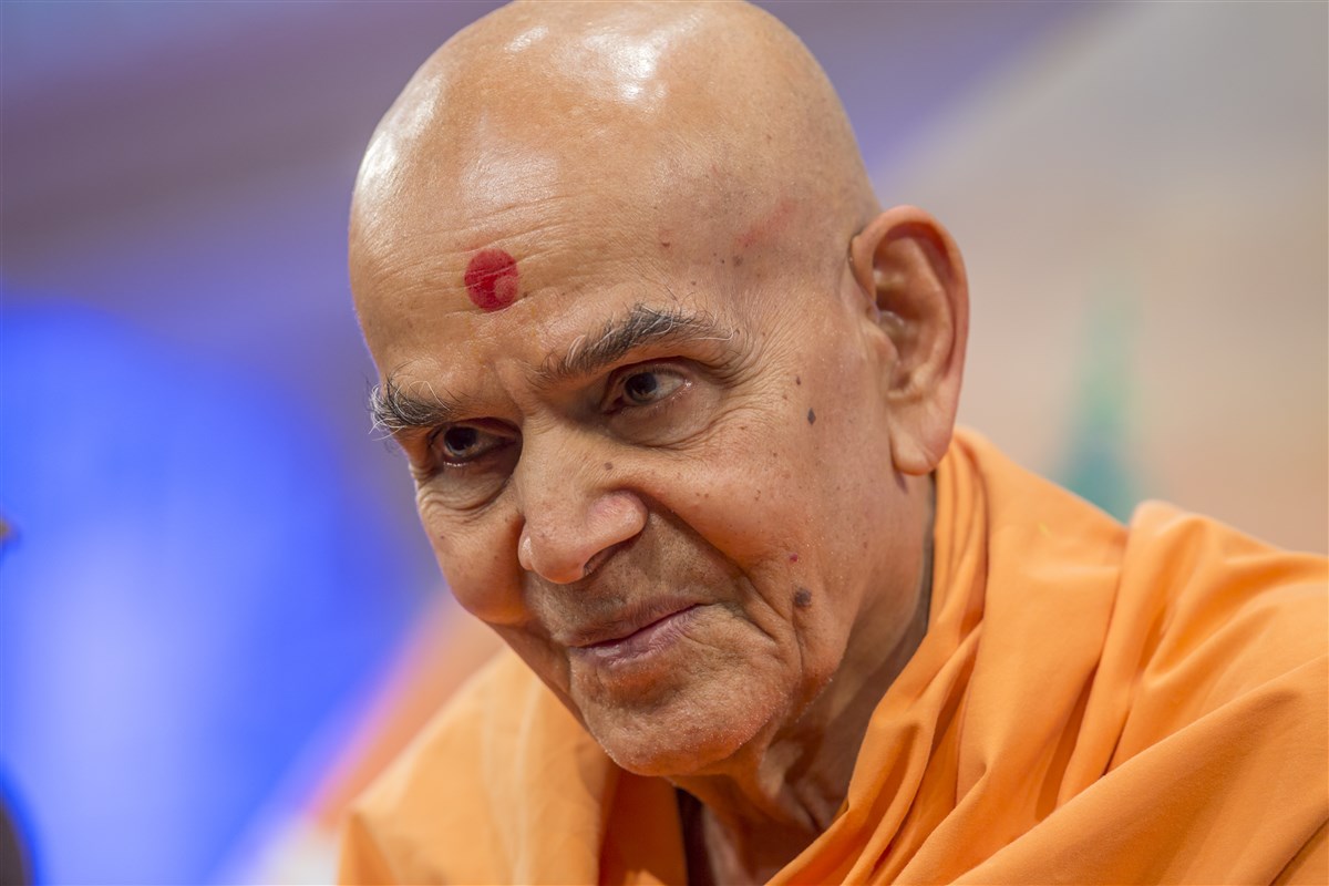 Swamishri blesses the assembly with his universal wisdom for happy, harmonious family living