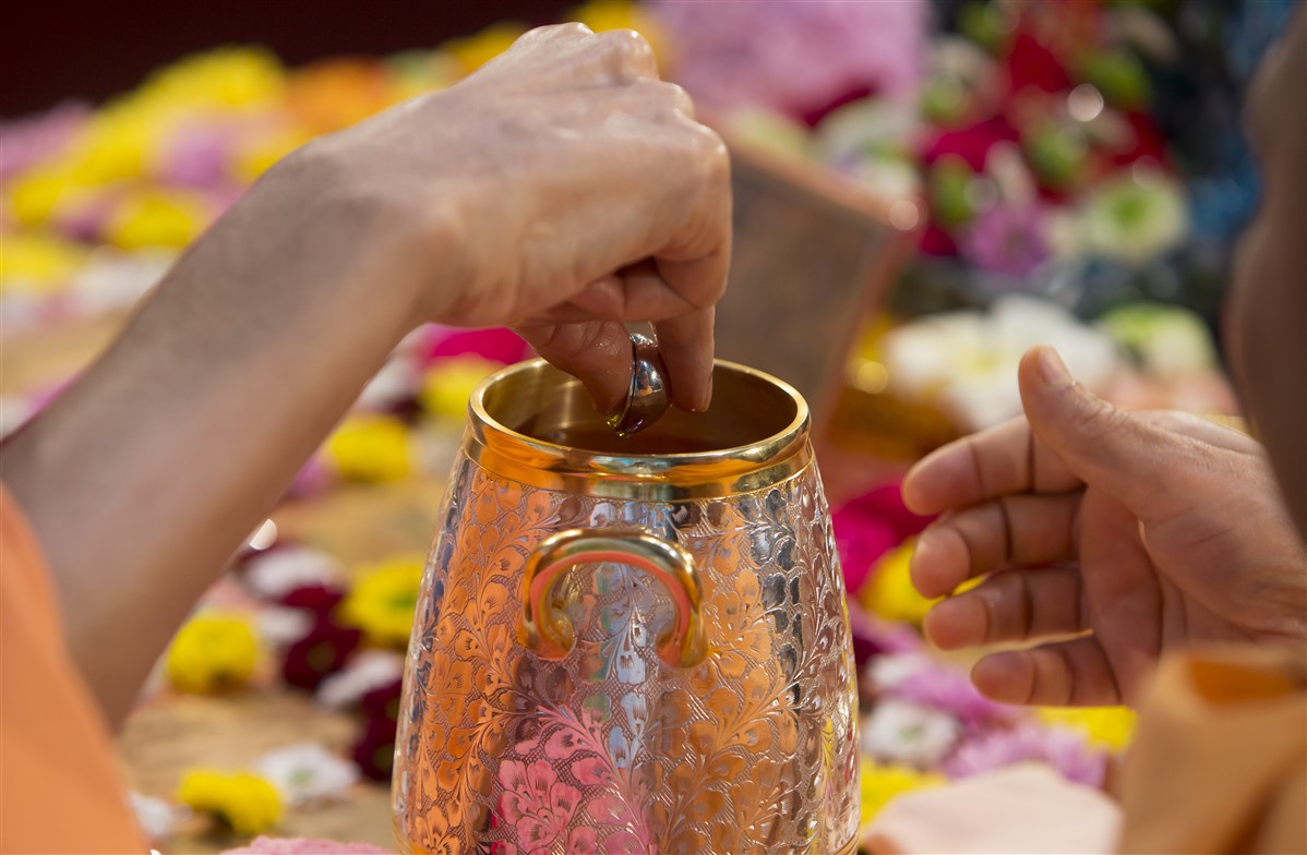 Swamishri performs the abhishek of Shri Nilkanth Varni