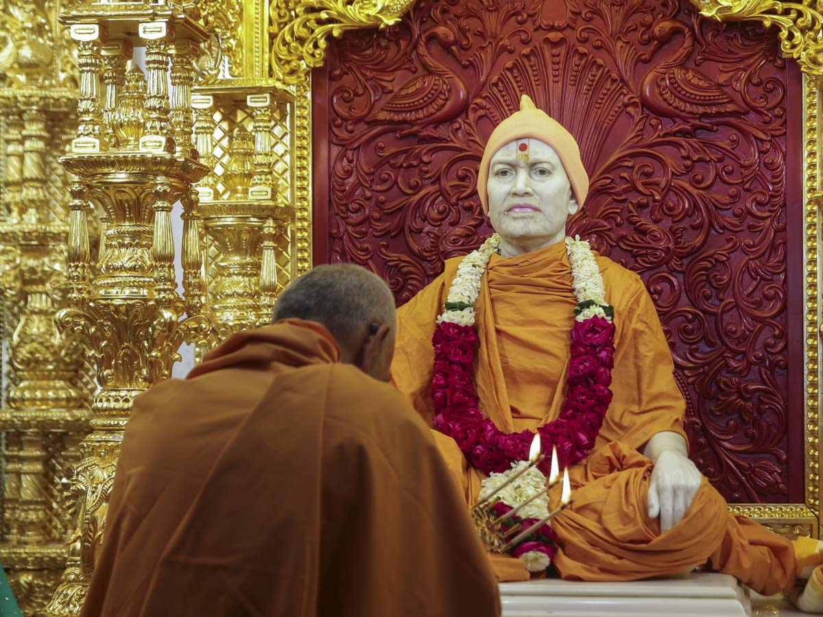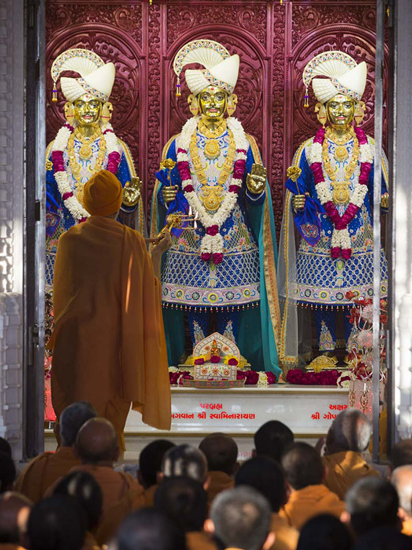Param Pujya Mahant Swami Maharaj performs arti, 30 Jan 2017