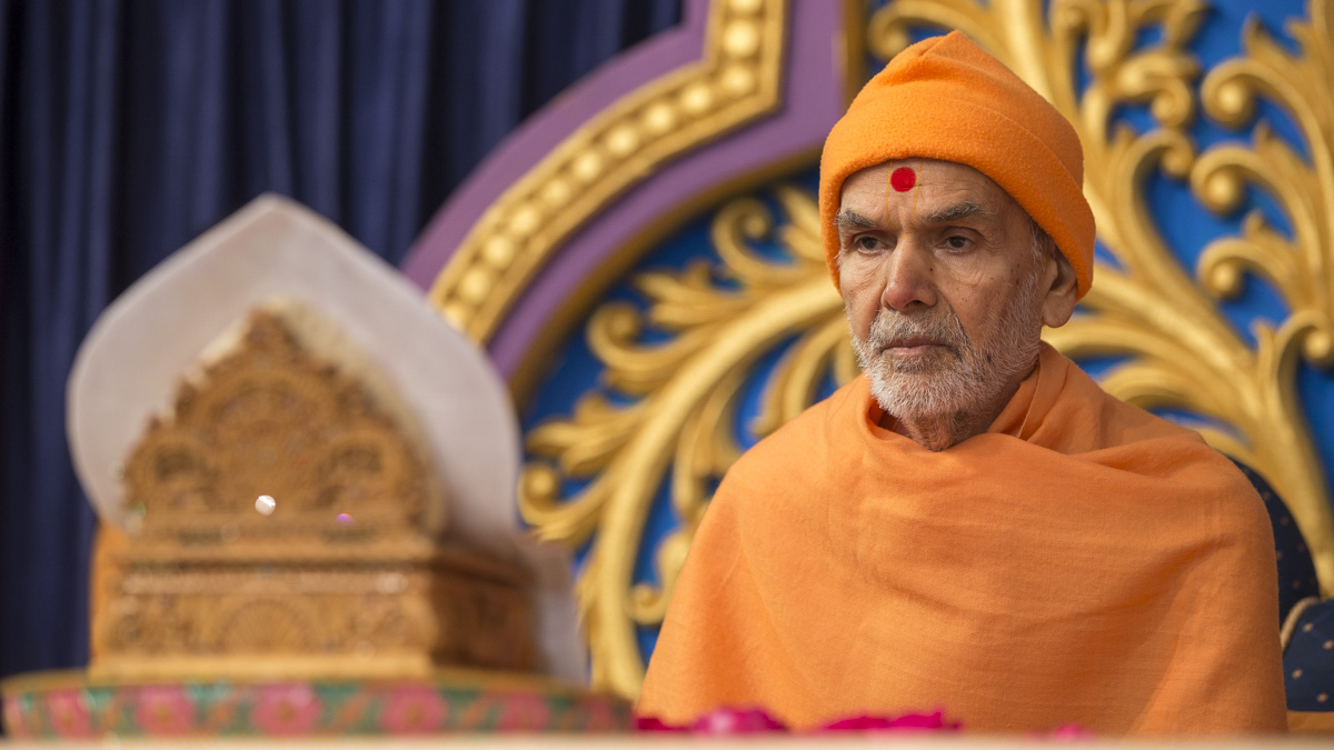 Param Pujya Mahant Swami Maharaj during the welcome assembly, 30 Jan 2017