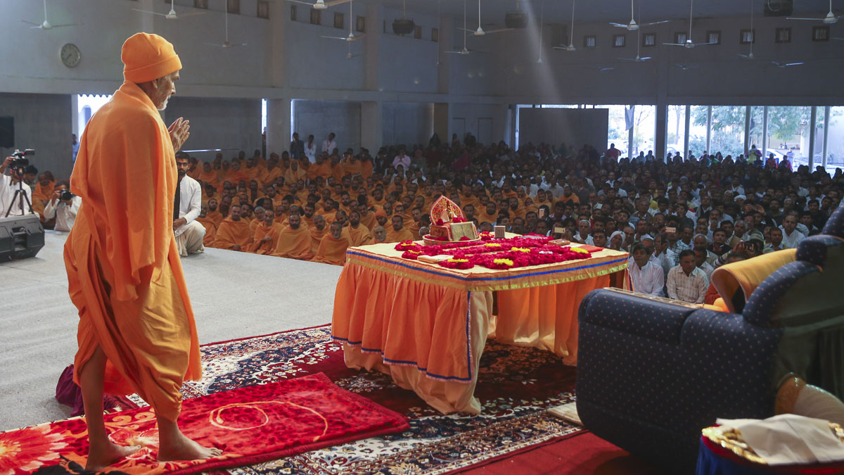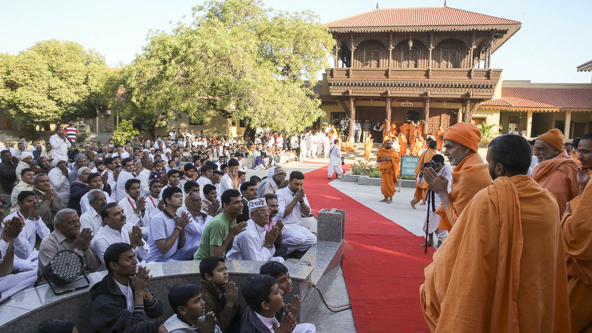 Param Pujya Mahant Swami Maharaj greets devotees with 'Jai Swaminarayan', 31 Jan 2017
