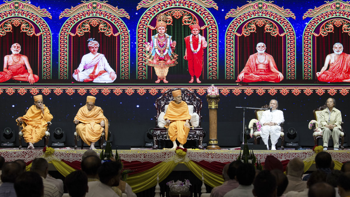 Dr. Chirapat Prapanvidya, Chief Advisor, Sanskrit Studies Center, Silpakorn University, Bangkok, with Swamishri
