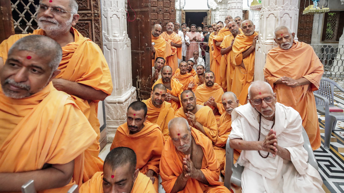 Sadhus honor Swamishri with a shawl