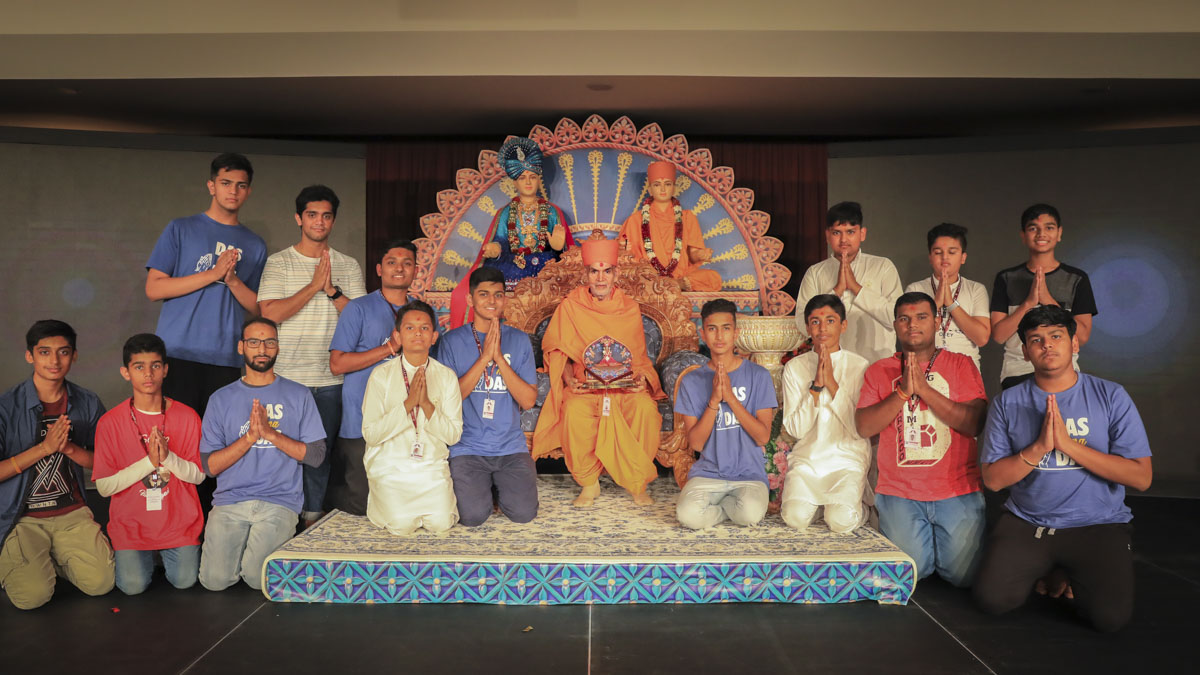 Swamishri greets kishores with 'Jai Swaminarayan'