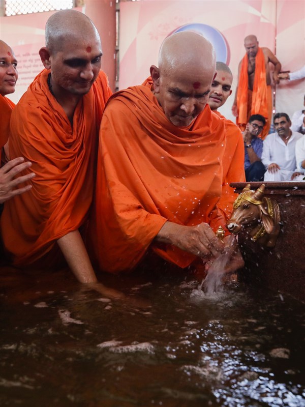Swamishri performs abhishek of Shri Harikrishna Maharaj