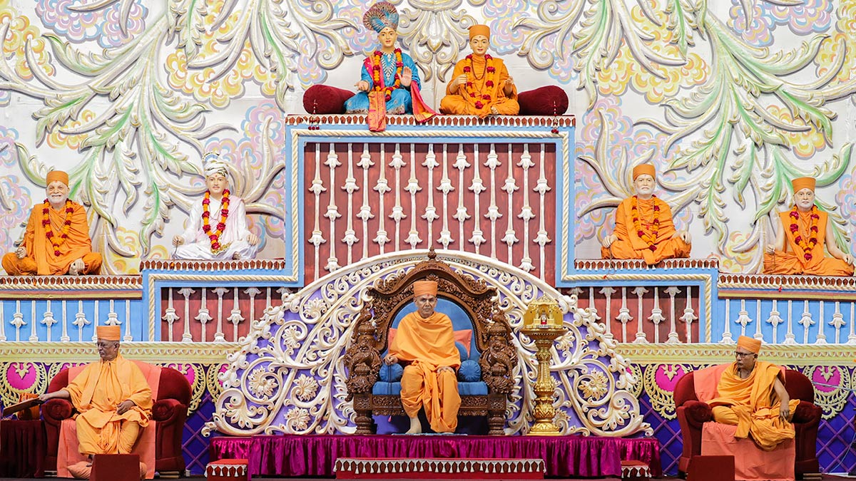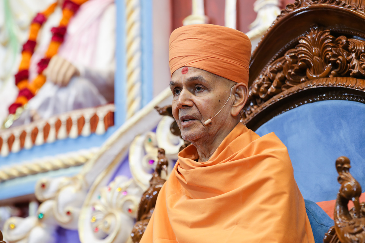 Param Pujya Mahant Swami Maharaj greets sadhus with 'Jai Swamianrayan'