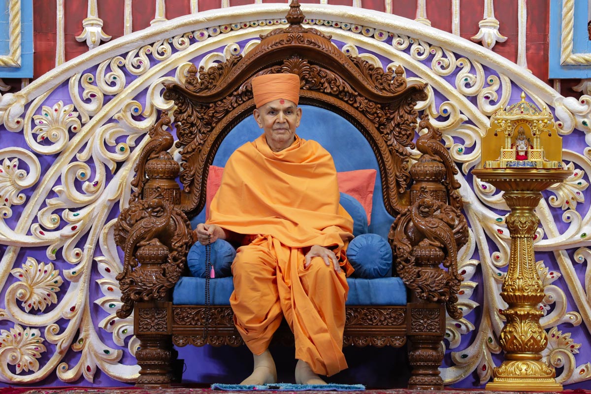 Swamishri engrossed in darshan in the Yogi Smruti Mandir
