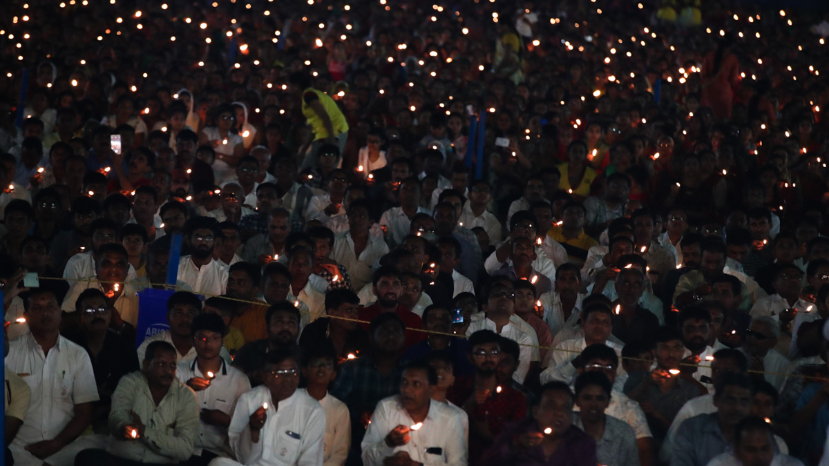 Brahmadarshan Swami addresses the Aksharbrahman Gunatitanand Swami's 234th birthday celebration (Sharad Purnima) assembly