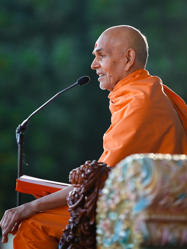 Swamishri greets devotees with 'Jai Swaminarayan'