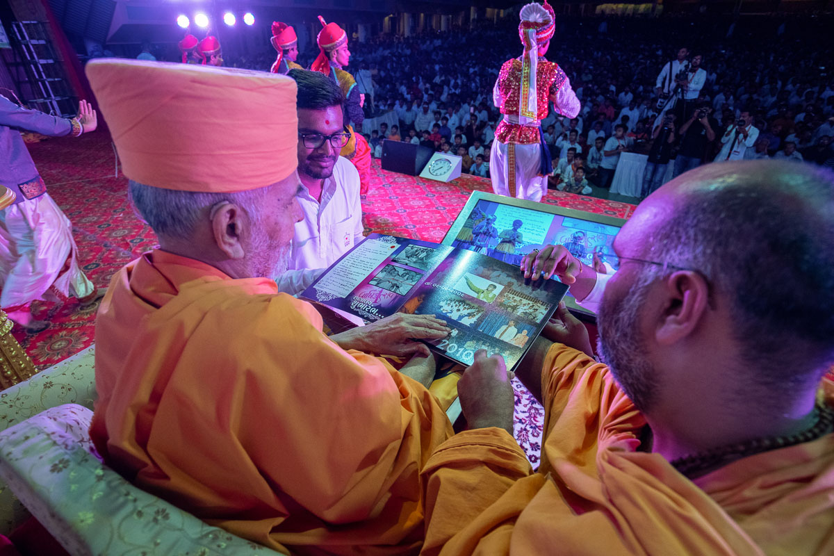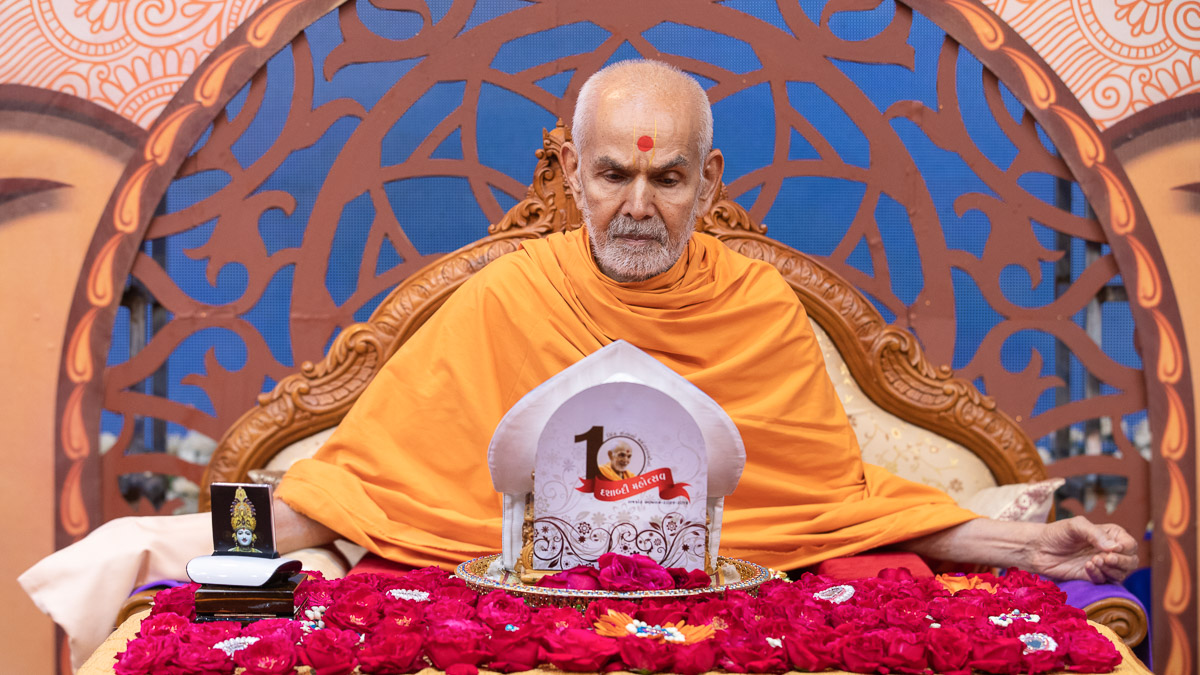Swamishri offers thal to Shri Harikrishna Maharaj