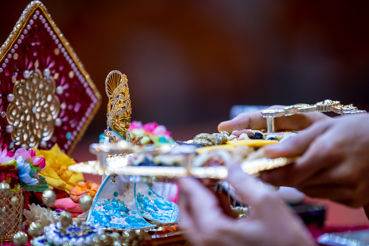 Swamishri offers thal to Shri Harikrishna Maharaj