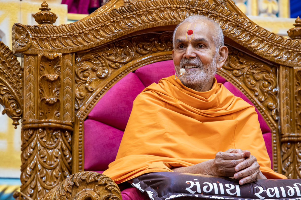 Swamishri greets devotees with 'Jai Swaminarayan'