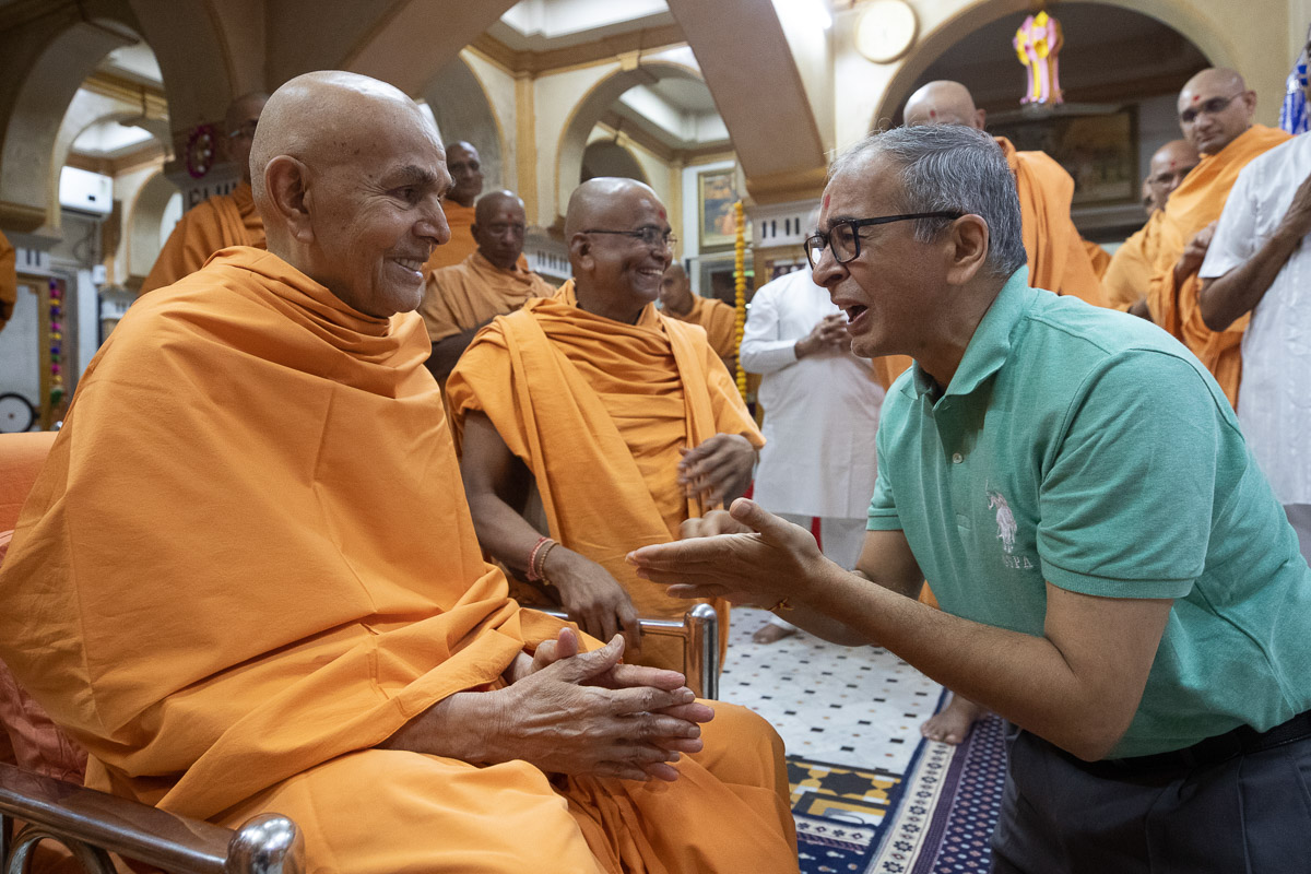 Sadhus doing darshan of Param Pujya Mahant Swami Maharaj