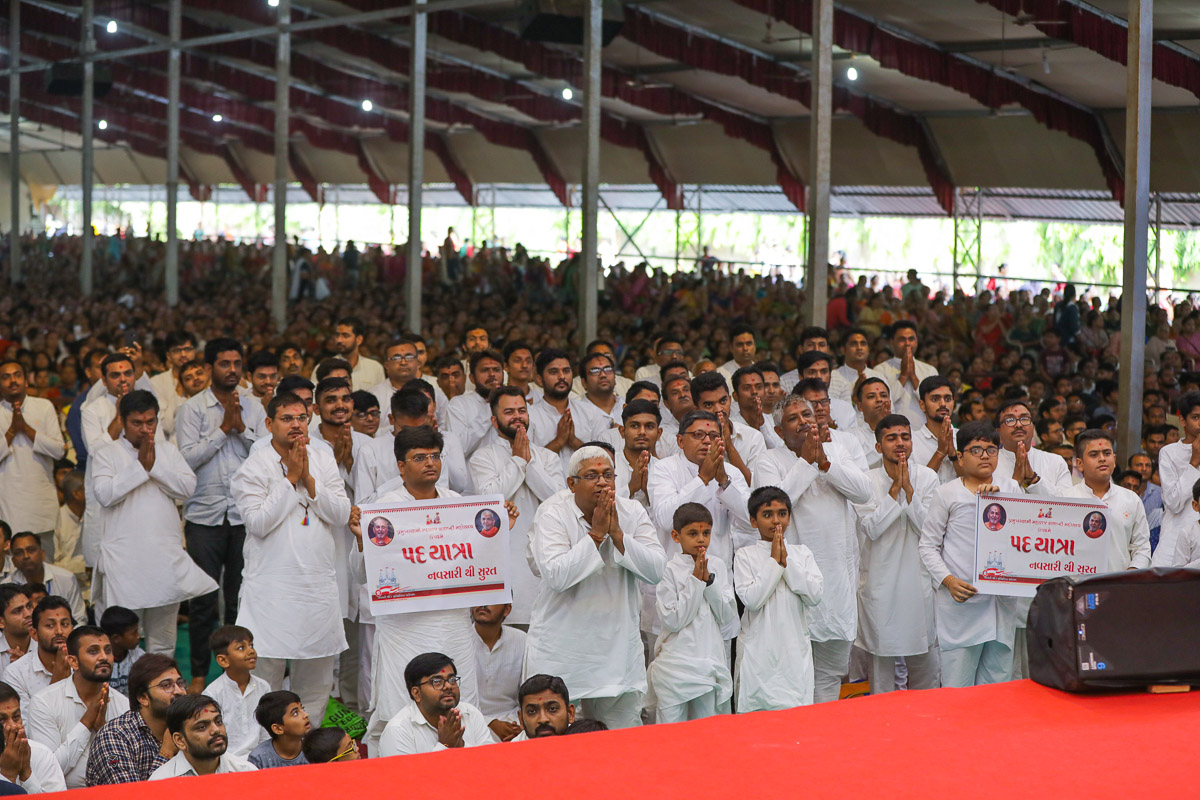 Param Pujya Mahant Swami Maharaj greets sadhus with 'Jai Swaminarayan'