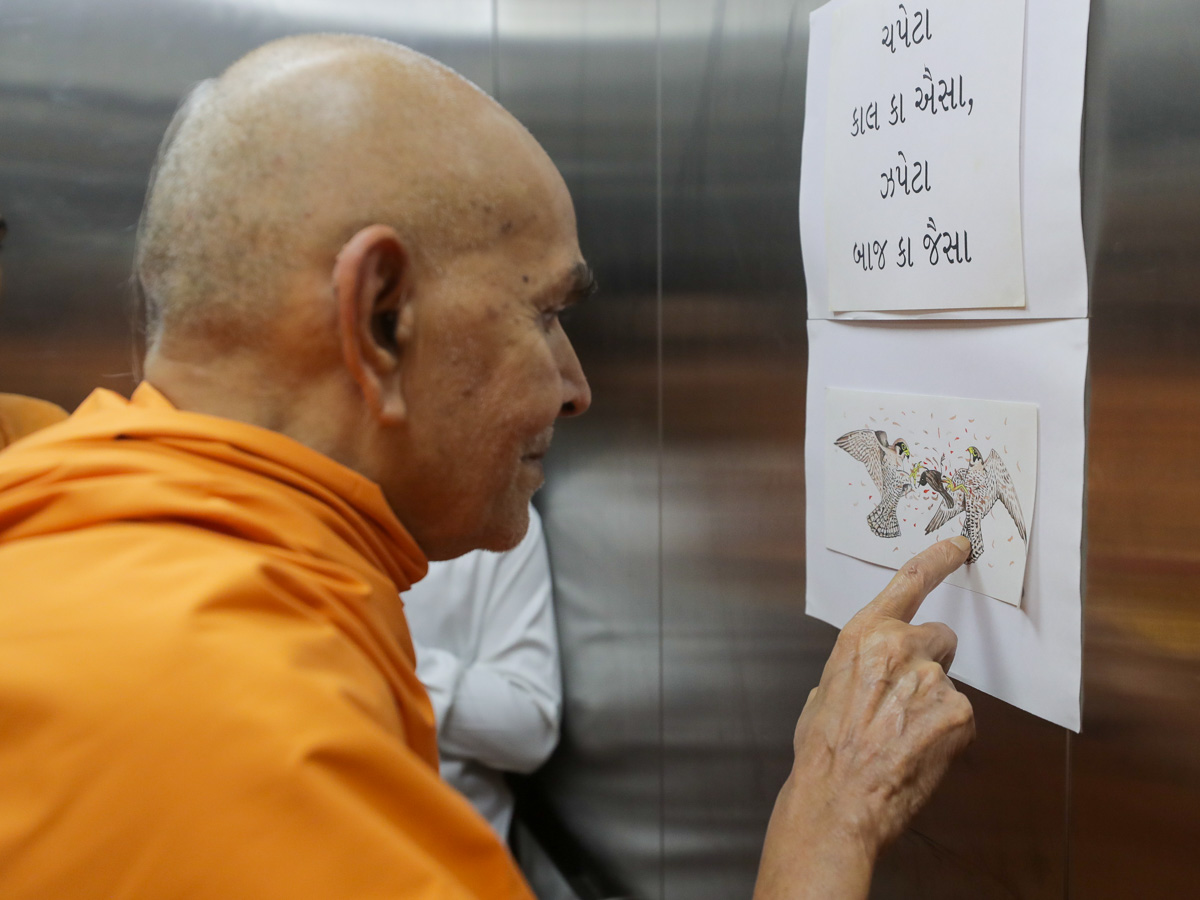 Param Pujya Mahant Swami Maharaj observes a display