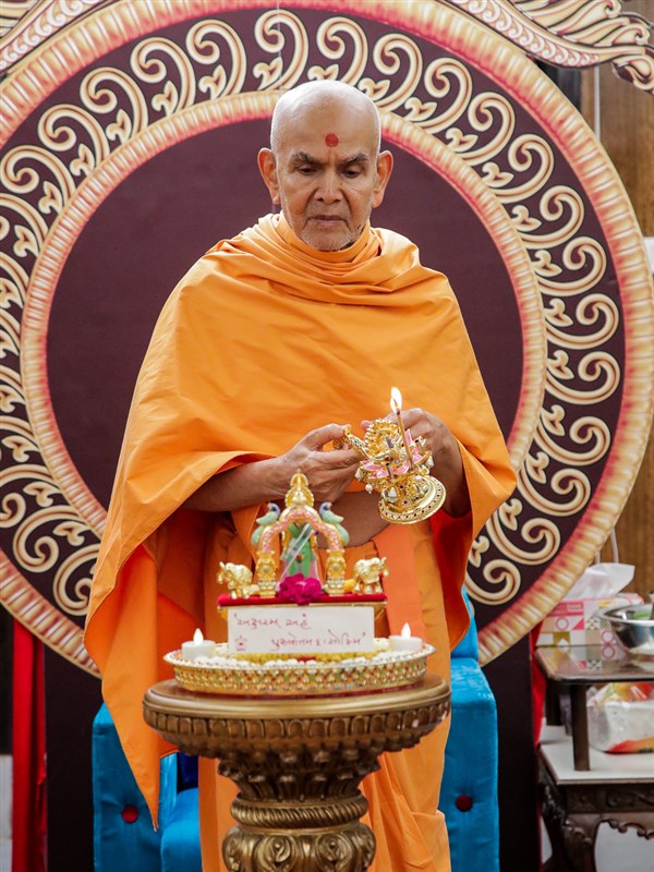 Swamishri performs the morning arti