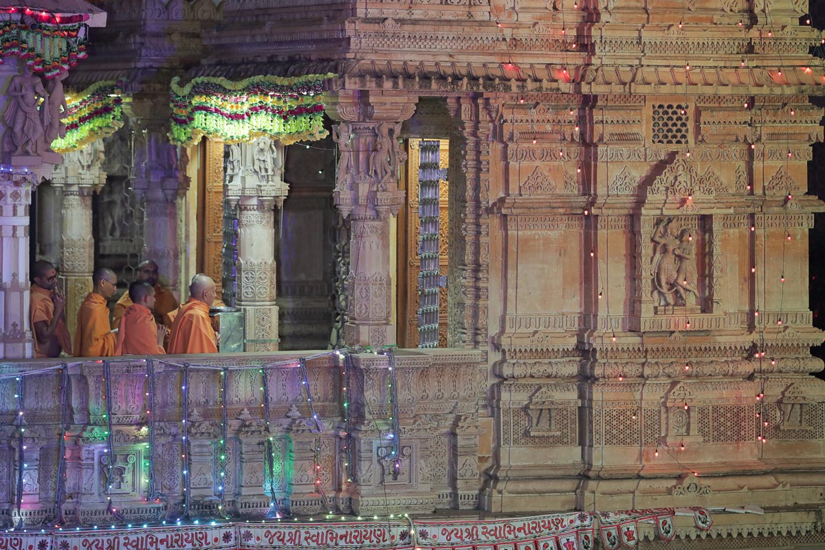 Senior sadhus doing darshan of Swamishri