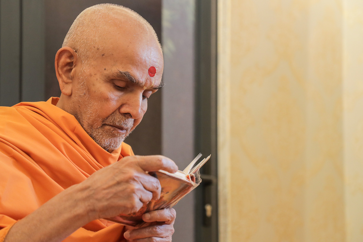 Swamishri engrossed in darshan of Shri Harikrishna Maharaj