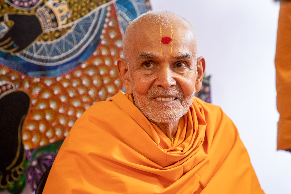 Swamishri greets devotees with 'Jai Swaminarayan'