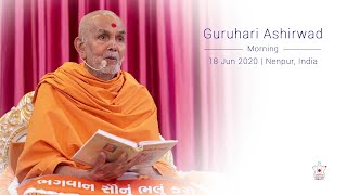 Param Pujya Mahant Swami Maharaj performs the morning arti