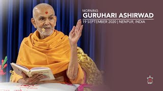 Param Pujya Mahant Swami Maharaj performs the morning arti