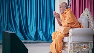 Param Pujya Mahant Swami Maharaj performs the morning arti