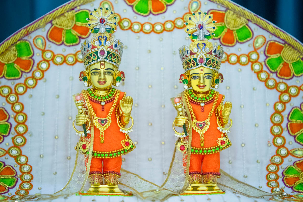 Swamishri offers thal to Shri Harikrishna Maharaj and Shri Gunatitanand Swami
