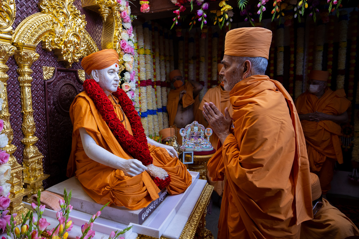 Swamishri performs pujan of Brahmaswarup Pramukh Swami Maharaj