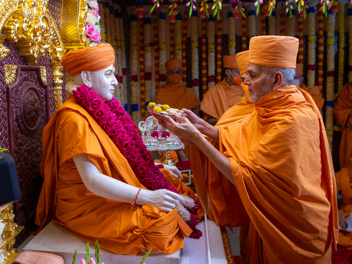 Swamishri offers thal to Brahmaswarup Pramukh Swami Maharaj