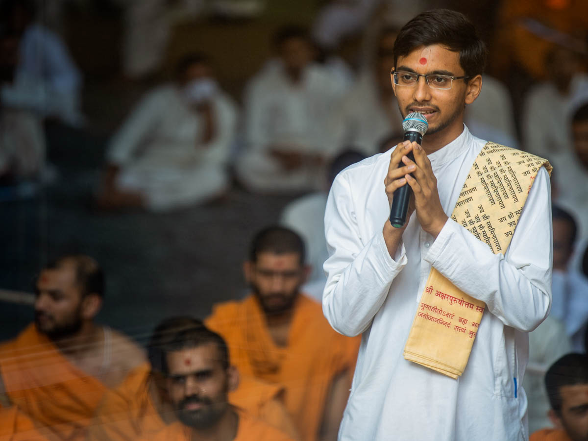 A student of Swaminarayan Sanskrit Mahavidyalaya, Sarangpur, asks a question