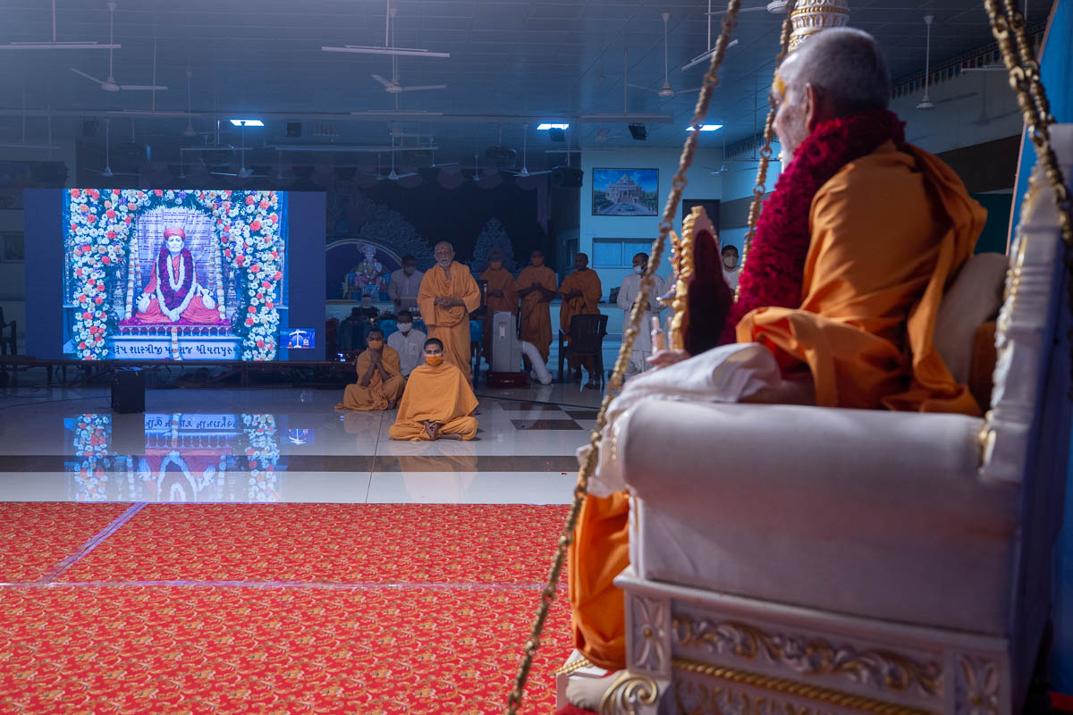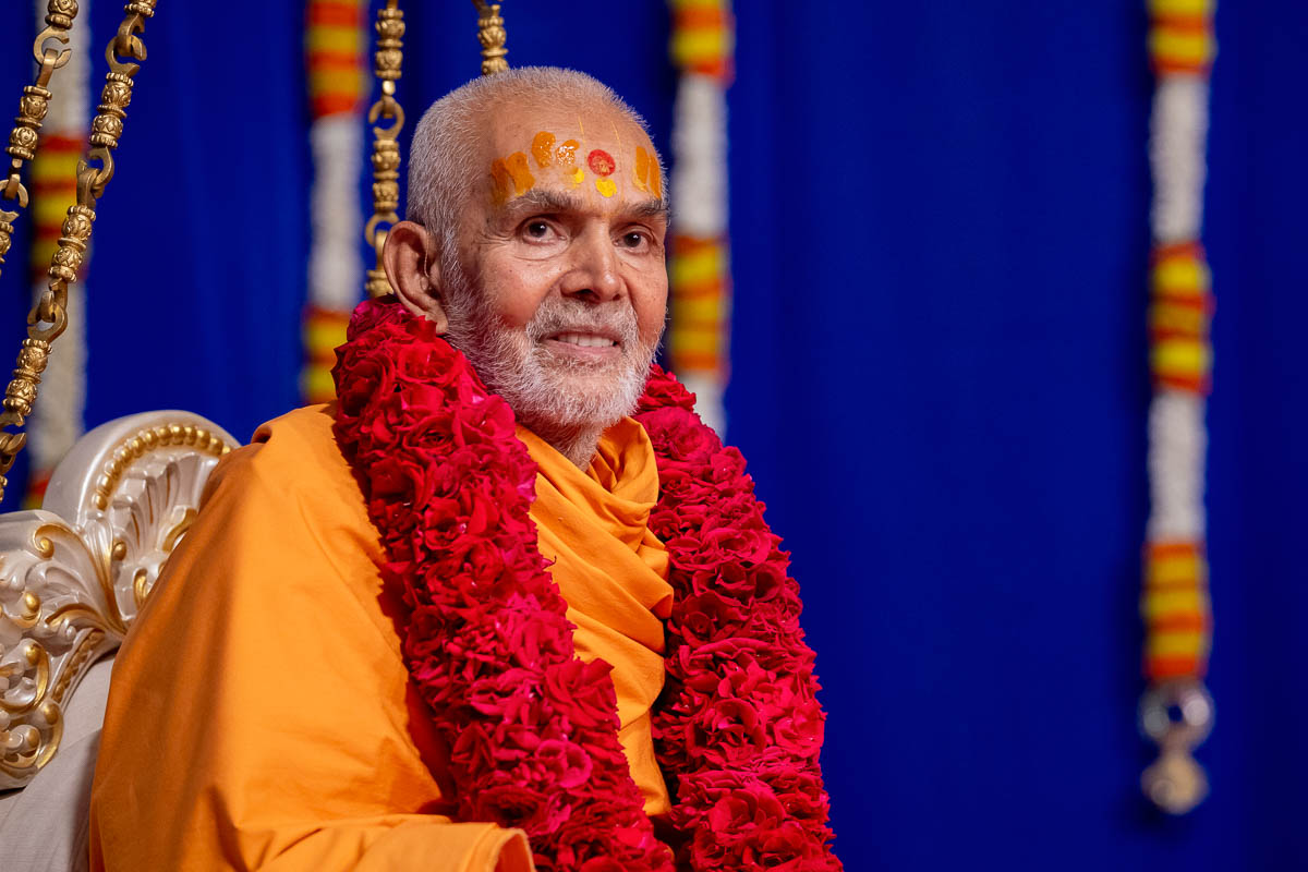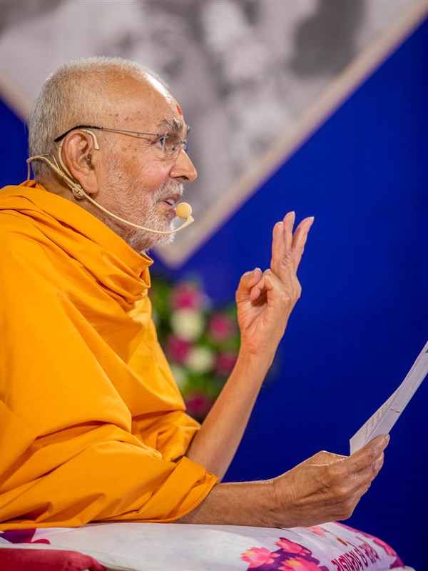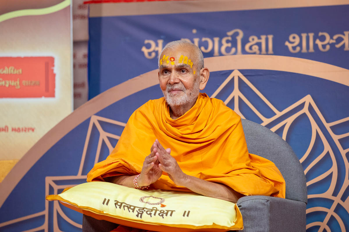 Swamishri blesses the morning Shastriji Maharaj Parva assembly