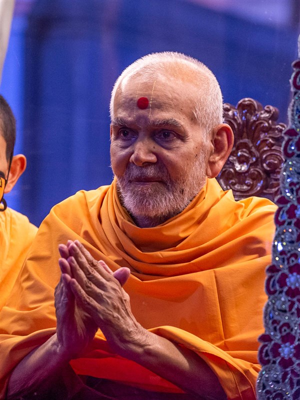 Swamishri and Pujya Swayamprakash Swami (Doctor Swami) perform the arti