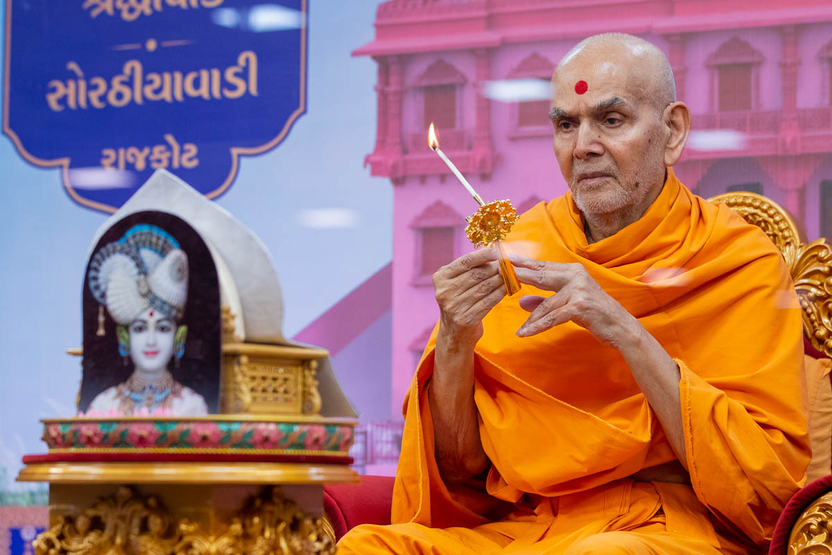 Swamishri engrossed in darshan of Shri Sukh Shaiya