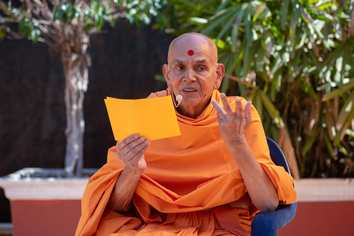 Swamishri chants the Swaminarayan dhun to pray for the all-round development and progress of India and its citizens on the occasion of India's Republic Day