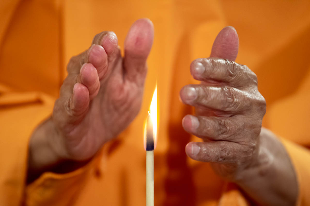 Param Pujya Mahant Swami Maharaj performs the morning arti
